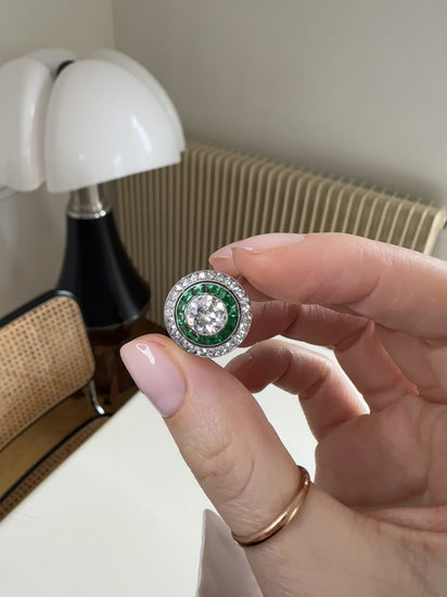 ダイヤモンドとエメラルドのターゲット・ハロー・リング