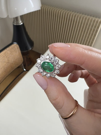 エメラルド・デイジー・リング 1.60カラットとダイヤモンド