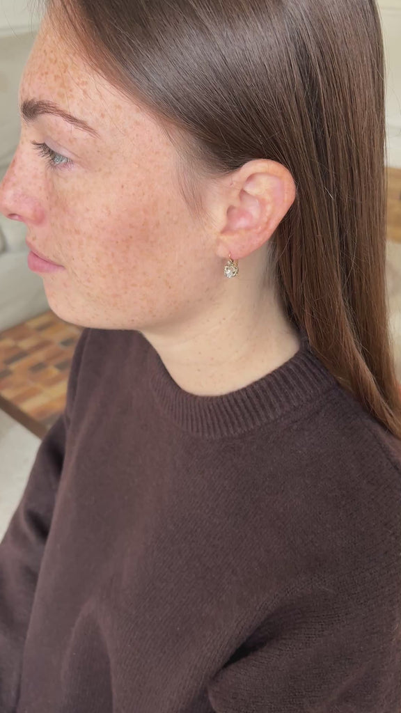 18Kローズゴールドとプラチナ(ホースヘッド・ホールマーク)のスリーパー・ピアス。クラウン型ローズカット・ダイヤモンド2石(推定総重量約0.70カラット、推定カラーI/推定クラリティVS)。