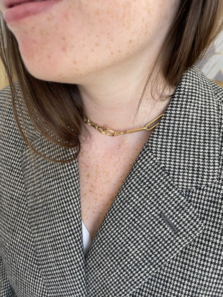 私たちのモデルはコンバーチブルピースで、タイムレスなスタイルを持つチェーンで、様々な着け方ができるものです。