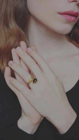 ブシュロン イエローゴールド ボヘミアン スネーク&タイガーアイ リング