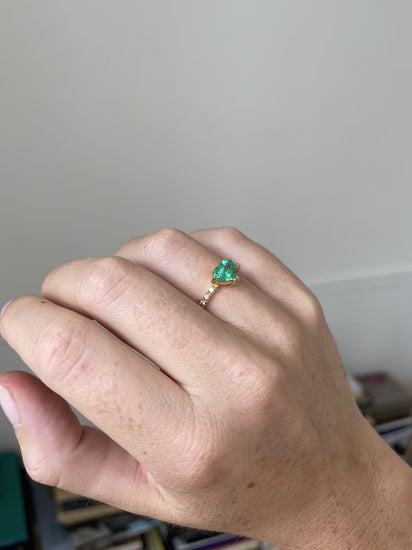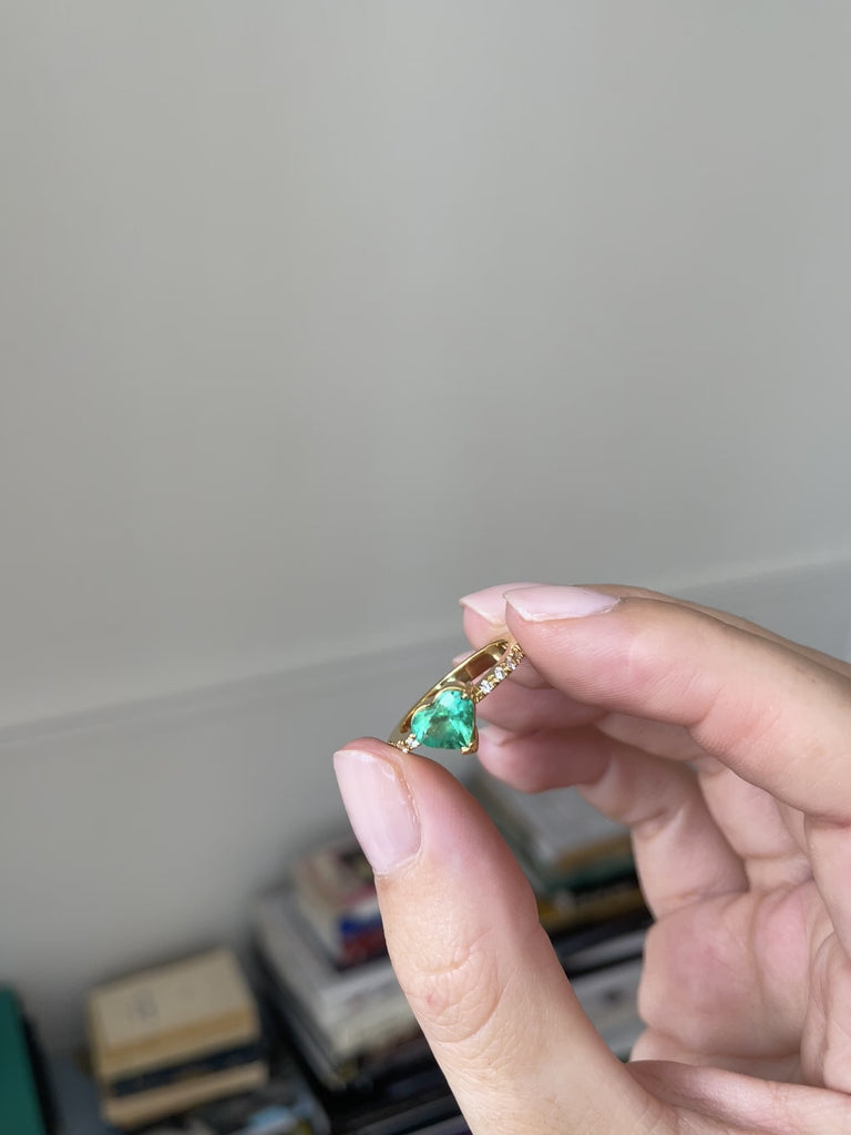 コロンビア産エメラルドとダイヤモンドのハートリング