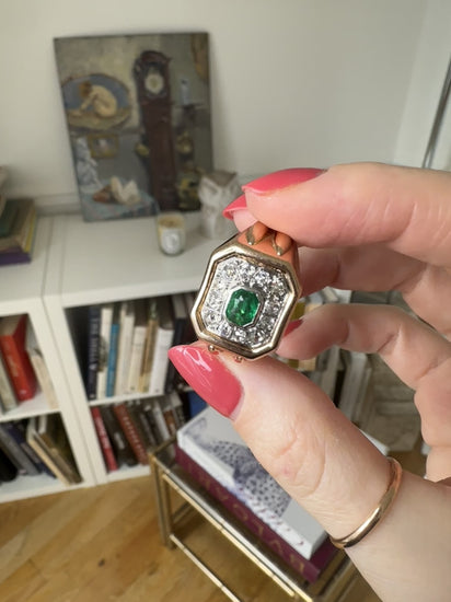 コロンビア産エメラルドとダイヤモンドのタンク・リング