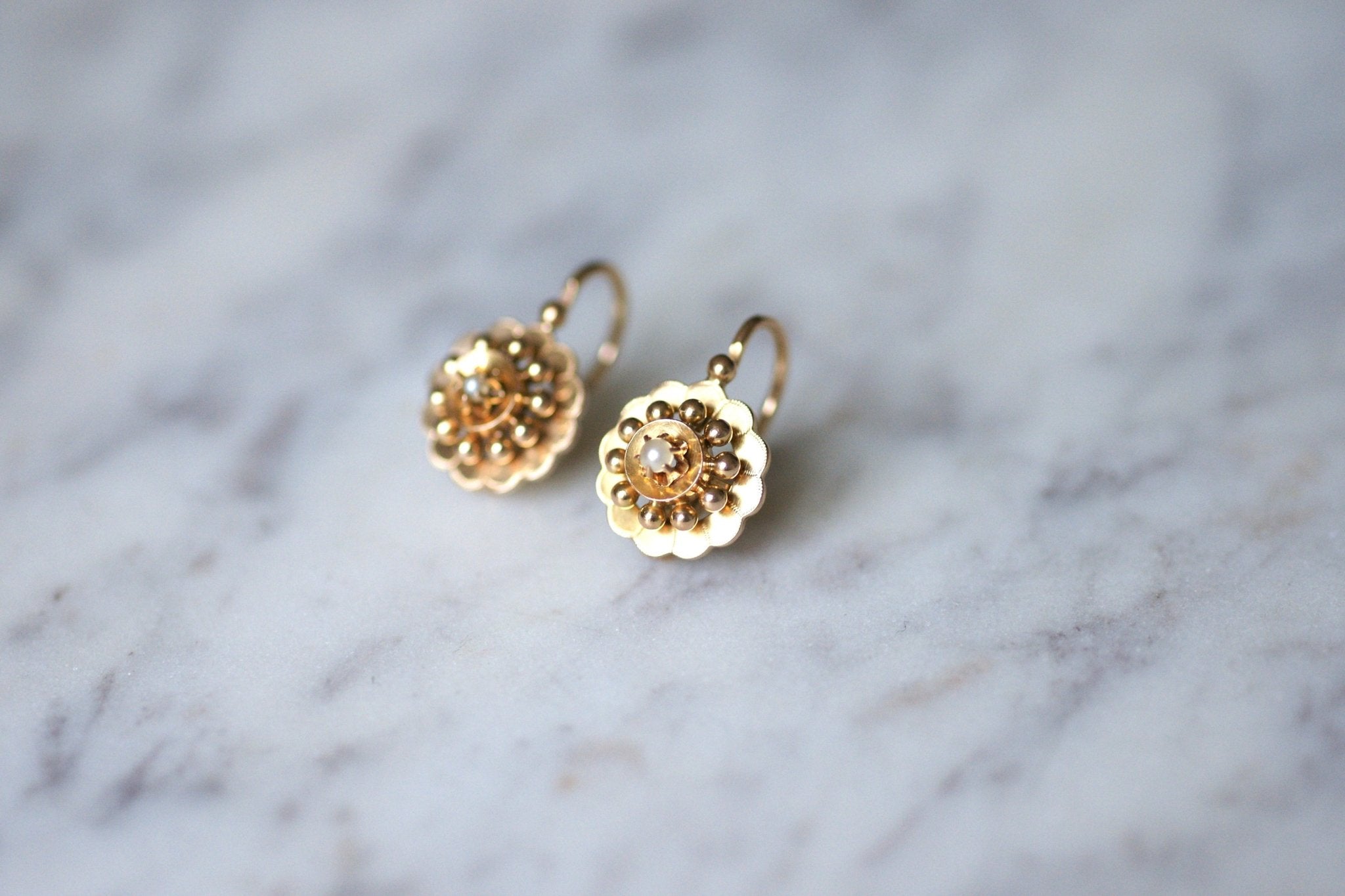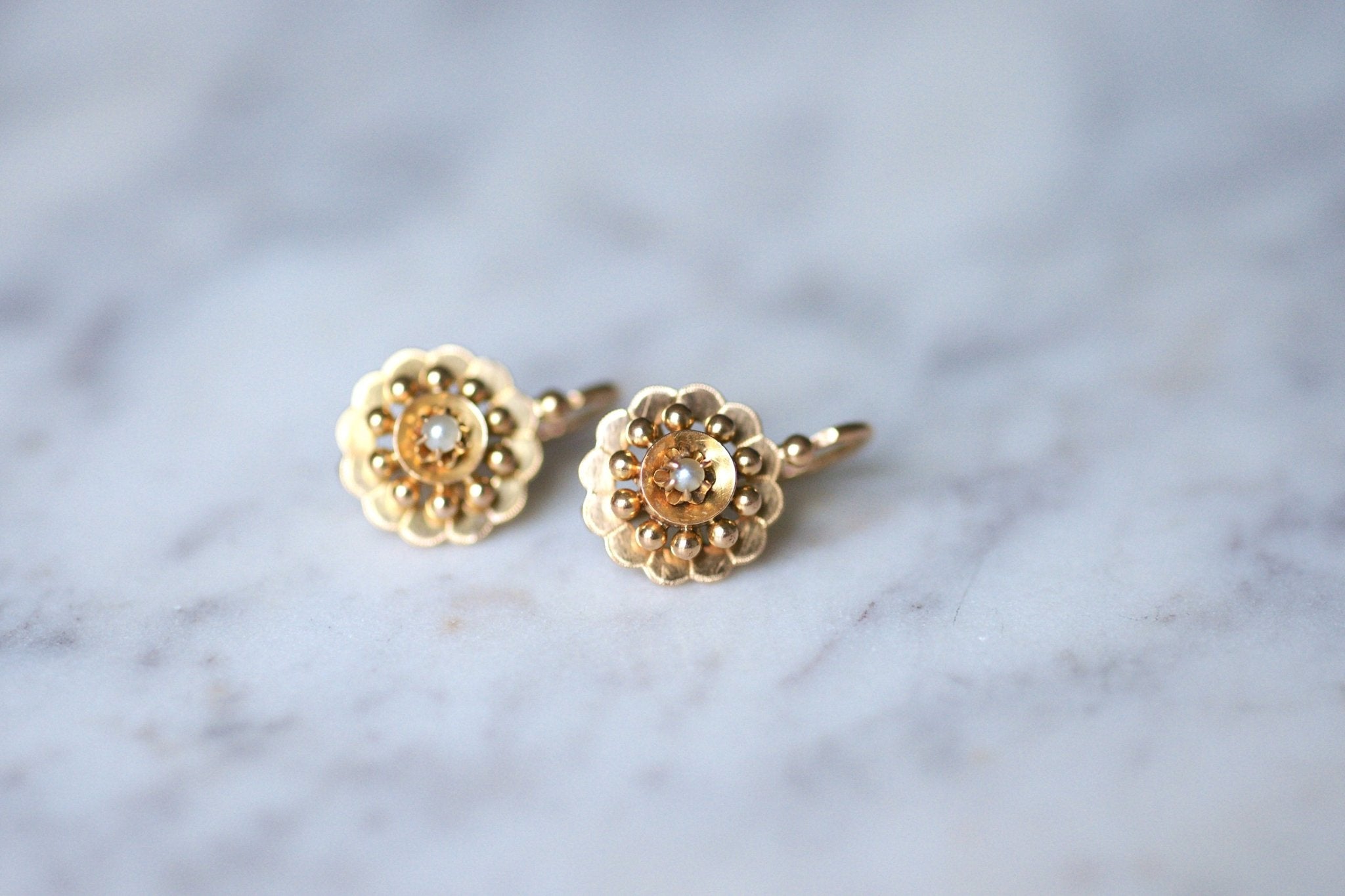 拡大 アンティークピンクゴールドとパールのフラワーピアス - ペネロペギャラリー