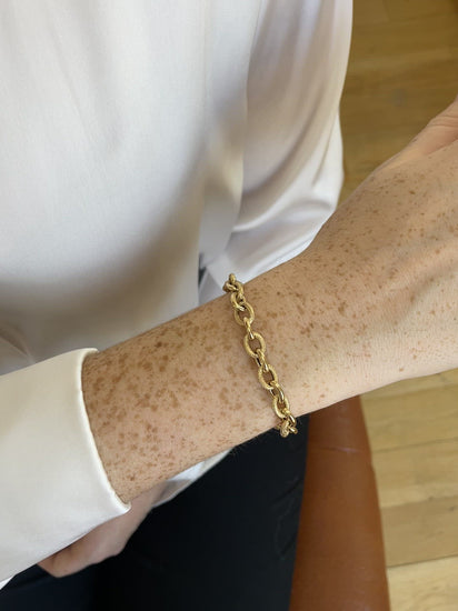 18Kイエローゴールド製のフォルサット・リンクを交互に並べた立体的なブレスレット(2つのリンクのうち1つはチェーシング加工)。