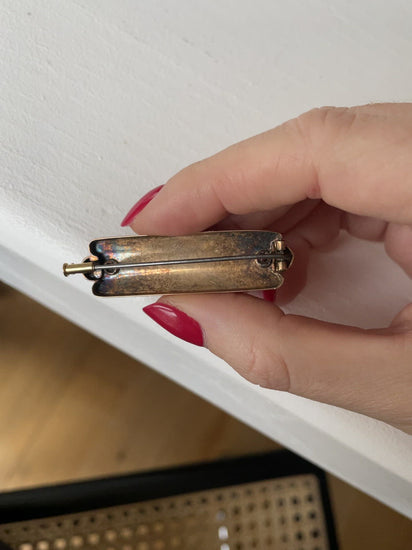 アンティーク14Kローズゴールドとシルバープレートのブローチ。(ホールマーク:ホタテと白鳥)。 中央にローズカットダイヤモンドをセットした「Fidèle」の刻印があります。