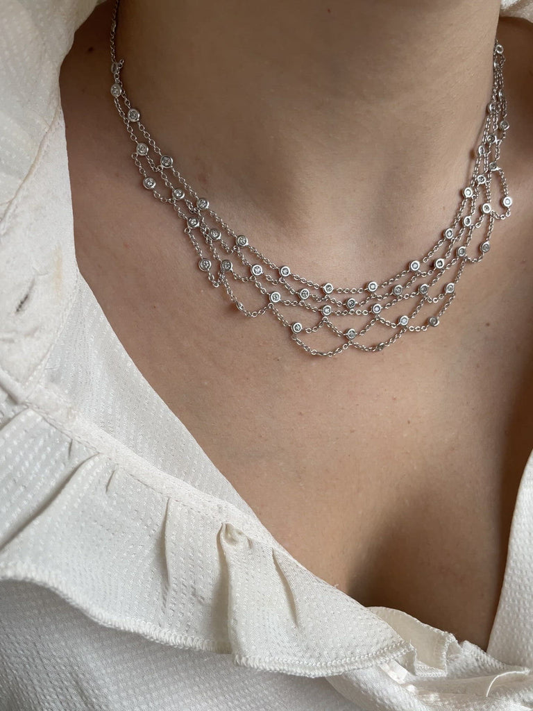 拡大 ホワイトゴールドとダイヤモンドのドレープネックレス - Galerie Pénélope